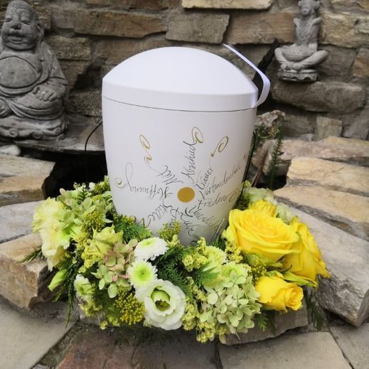- gepflanzte Arrangements sowie selbstgefertigte dekorative Gestecke und Schmuckkränze